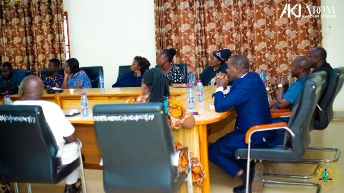 Hon. Johnson Kwabena Adom, District Chief Executive, convened a meeting with Cocoa Extension Officers to discuss current operations, challenges, and the vision for cocoa production. He shared the policies designed